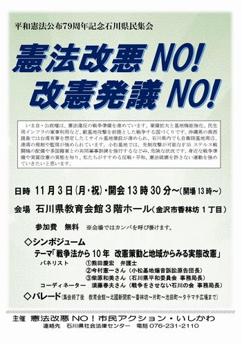 平和憲法公布77周年記念石川県民集会 憲法改悪 改憲発議