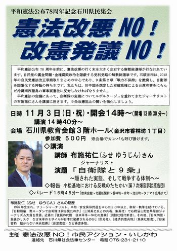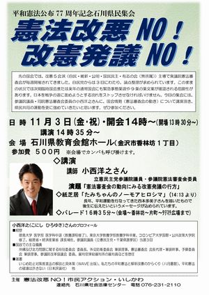 平和憲法公布77周年記念石川県民集会 憲法改悪