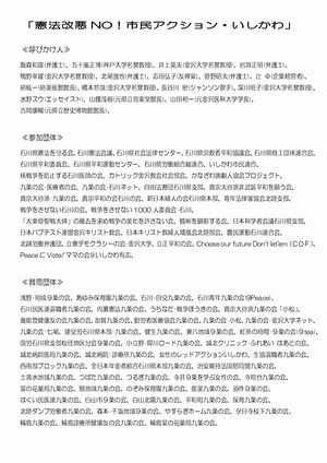 - 5月3日(日)に予定しておりました「平和憲法施行73周年記念石川県民集会」の集会中止(県内のイベント案内)のお知らせを掲載しました。
